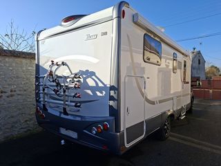 Caravane BÜRSTNER AVERSO TOP 485 TS Longueur totale 7,30m - Largeur 2,3 m - Hauteur 2,6 m - Poids à vide 1350 kg P.T.A.C.autorisé 1700 kg (Grande capacité de charge utile) 4 cou