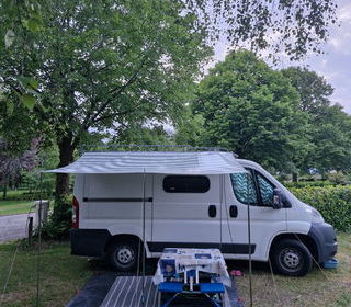 Caravane 3 places , avec panneaux photovoltaïques pour éclairage et prise USB . Frigo , plaque de cuisson 4 feux en inox . Salle de bain avec douche ,WC chimiques et lavabo , peti