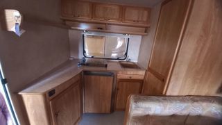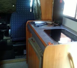 Douche intérieur WC à cassette gaz 2 feux évier frigo cuve eau propre 120 I eau usée 60l frigo chauffage trauma lit 130_190 nombreux rangements placard caméra de recul crochet atte