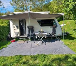 Caravane surbaissée excellent etat toujours à l abri, déplace caravane, panneau solaire, auvent gonflable, casquette avec côte amovible, tapis extérieur Intérieur 3 places,coin re