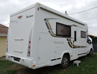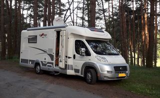 camping car profilé de 7.50 M de long sur 2.30 M de large et 2.86M de haut en excellent état stationner à l'abris des intempéries dans un hangar il est équipé d'un lit central de 2