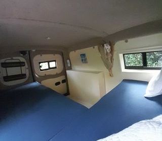 peinture métallisé capacité eaux 80 l de propre et 60 usé table intérieure et extérieure frigidaire impeccable très bon fonctionnement chauffage GO 2 feu cuisine évier inoxy