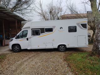 Adria Coral 650 SP. Porteur Fiat ducato 2.8 JTD 127 CH. Dimensions 6.72mx2.21m hauteur 2.67m Nombre de places 5 et 4 couchages(dont 1 lit dinette) PTAC 3500Kg Chauffage Truma, gazi