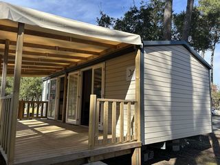 Mobil home situe dans un camping 4* à Lege Cap Ferret - Année 2022 - En parfait état. Situé proche des commerces et de la piscine, en bord d'eau, disposant d'une grande terrasse.