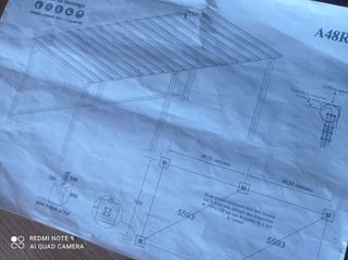 Abri de camping car ou pour 2 voitures Vendu avec notice de montage Hauteur 3.57 au plus haut et 3.170 au plus bas Largeur 3.88 Longueur 8.06 Couvert avec des tôles verte N'est