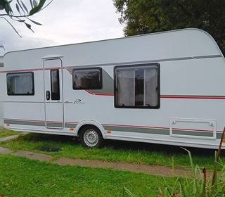 Caravane surbaissée excellent etat toujours à l abri, déplace caravane, panneau solaire, auvent gonflable, casquette avec côte amovible, tapis extérieur Intérieur 3 places,coin re