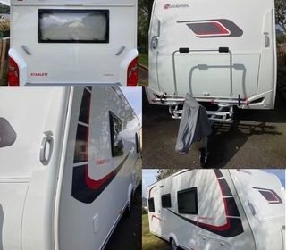 A vendre caravane : 4 couchages Auvent gonflable neuf acheté en 2025 Porte vélos sur la flèche (possibilité 2 vélos électriques ) Mat plus antenne télé + support tv Mover : aid