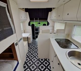 Description Eclaireur d'auvent + 3 feu Stop + Coffre avant intégré en ABS + Roue de secours + Toit anti -grêle + Combinés stores et moustiquaires + Double vitrage + équipement TV a