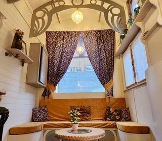Tiny house de 15m2 Dimensions hors tout : h 4m30 L 5m50 l 2m55 Espace chambre en mezzanine SDB avec douche et wc (eau) Chauffage électrique Plaque de cuisson double feu Réfrigérat