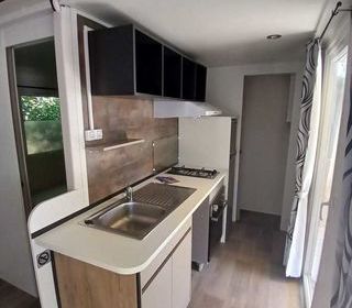 Vend mobile home tout équipé en très bon état et climatisé. Disponible au camping de l'Arnel à Villeneuve les Maguelone. Camping ouvert du 1er Avril au 30 Septembre. Cuisine tout