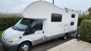 Camping-car Ford Transit 2.4L 140ch Année 2006, 151 000 km 6 places carte grise, 7 couchages Auvent, porte vélo, caméra de recul, clim,chauffage au gasoil,télévision,panneau solair