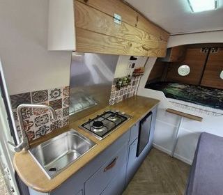 Camping car compact en parfait état avec lit pavillon électrique 190x140, grand salon XL, salle d'eau XL, idéal pour un couple. Design intérieur soigné avec éclairages led, toutes