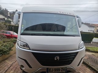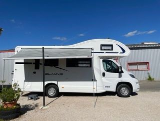 Camping car profilé / 6 couchages et 6 places carte grise : 2 places lit à la française, 2 places lit pavillon électrique, 2 places lits dînette Douche et wc séparés / marche pieds