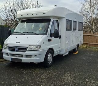 Laika ecovip 6.1 sur fiat Ducato 2,8l Châssis alko Année 2004 194000 km 9 cv 2800cm3 127cv din L6.92. l 2.32. H2.80 4 places carte grise 4 couchages Lit à la française et lit
