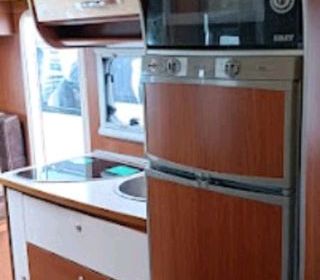Bonne état général, contrôle technique OK, place homologué 4, couchage 3, lit central, chauffage au gaz à air pulsé, prises de courant 12V et 220V. Porte vélo p 2, longueur