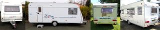 Caravane avec son auvent et un store. Un lit adultes de 140 cm, deux lits ados de 80 cm superposés, et un lit pour deux enfants transformable en table/banquettes. Coin toilettes av
