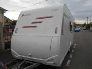 Caravane en superbe état. 4 couchages, 2 sur lit permanent central et 2 sur dinette. Petit évier avec mitigeur. Gaz 3 feux. Chauffage électrique 220V. Frigo 12V 150 litres plus fre