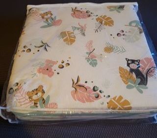 A vendre tapis tineo pour parc matière en mousse pour le confort de bébé avec housse lavable, jolis motifs tropical et animaux N'hésitez pas à me contacter pour avoir des informa