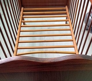 Lit barreaux bois foncé 60x120 partie coulissante vendu avec matelas déhoussable (été - hiver ) - tour de lit (petit hérisson vert baudet) - couette - 2 petites couvertures légère