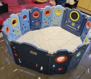 A vendre ce joli parc bébé modulable YOLEO Dimensions sont 1m25/1m25 idéale pour sécuriser l'espace de jeu de votre enfant Convient aussi bien pour fille et garçon Accessoir