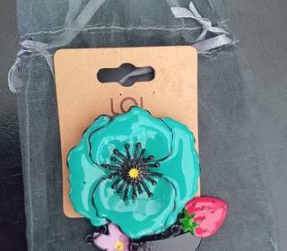 Broche vintage de luxe. Conception étincelante fleur Turquoises et de magnifiques Grappes de fruits rouges et violet. Broche pour costumes, manteaux, robes, écharpes, chapeaux.