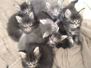 Magnifiques femelles Maine Coon. L'une est blue tortie, l'autre brown tortie blotched tabby. Elles sont nées le 18 février 2026. Elles pourront quitter la maison à partir du 18 mai