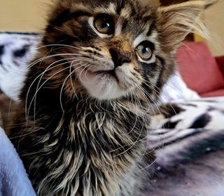 Disponible à la réservation, Astrée chaton maine coon femelle polydactile né le 30/10/2025 inscrit au Loof d'une portée de 4 chatons. Les parents sont Loof et testés négatifs HC