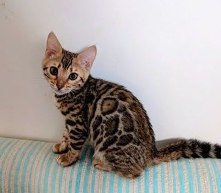 Nous avons deux chatons Bengal femelles brown tabby rosettes disponibles a vendre. Elles sont âgées de 3 mois. Couleur brown tabby à rosettes bien dessinées. Caractère très socia