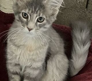 Arya de Cray (femelle, bleu tortie silver blotched tabby) : Maine coon LOOF, née le 29 mai, peut rejoindre une nouvelle famille à partir de mi septembre, conditions en MP Chatter