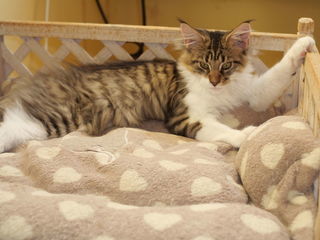 Elevage pro, familial, se situant dans l'Indre et Loire(37), vend Attila, joli chaton Maine Coon LOOF, frère d'Aurore, brown mackerel tabby et blanc, né le 21/05/2025 de Origin of
