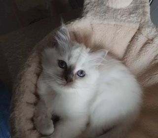 Disponible 1 chaton Sacré de Birmanie, 1 mâle (1 femelle réservée) couleurs : lilac point, nés le 05/08/2025 . Ils sont primo-vaccinés, identifiés, demande de loof sera effectuée e