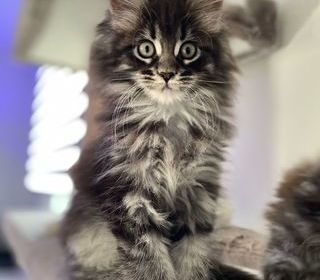 Akoya est une adorable femelle Maine Coon, née le 2 septembre 2025, qui recherche une famille aimante. ? C'est une petite boule de poils très douce, joueuse et curieuse, typique