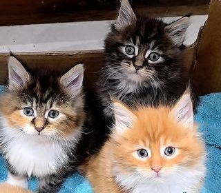 Je vous propose 3 chatons de Race Maine Coon inscrits au LOOF sur une portée de 5 chatons. Chatons disponibles dès maintenant. 1 mâle et 2 femelles.!!! d'une portée 5 Les deux pa