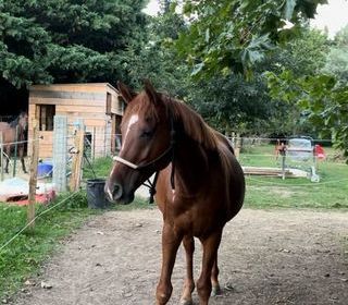 Jument de 12 ans, Onc toise environ 1,50m Gentille, manipuler, tient à l'attache, pansage.. Vie au pré connais le box, sociable avec les autres chevaux. A fait 3 poulain Voyage