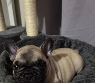 Type Bulldog francais (non lof mais parents pure race voir photo) 7 femelles et 1 males, couleurs rares et aux yeux bleus ainsi que verts pour la femelle fauve, de parents pure ra