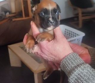 Chiots Boxer Mâles, fauves, nés le 06/02/2026 à réserver. Les parents sont visibles sur place et le père est LOF. Lors de leurs départs, il seront pucés, vaccinés, vermifugés et se