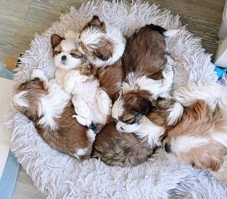 Chiots Shih Tzu nés le 2 septembre. Disponibles à partir du 15 novembre. Race exigeant une présence. Idéale pour retraités ou mi- temps. 1 mâle, 4 femellles. Non LOF. Père LO