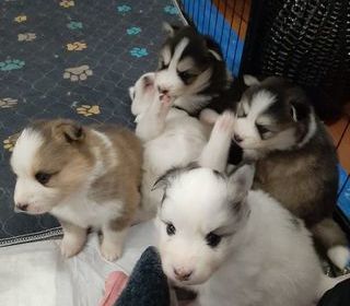 Je vous propose à la réservation de magnifiques chiots Pomsky (croisement Husky x Spitz nain), nés le 1er Décembre 2025 Les chiots grandissent dans un environnement familial, avec
