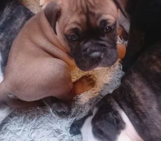 Bonjour A réserver 5 magnifique chiots bulldog continental née le 20 11 2025 2 mâles bringé foncé joueur câlin aventurier calme Dernière femelle tricolore joueuse câline aven