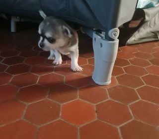 a réserver petit chien de race chihuahua non lof 1 male et 2 femelle issue de maman chihuahua poil court , yeux vert et couleur blue fawn non lof poids 3 kilos et de