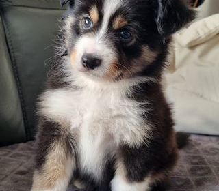 chiots berger australien x berger americain ( berger australien miniature ) , nés le 28 aout 2025 ,d'une portée de 7 , dont 1 màle rouge tri , 1 màle bleu merle , 1 màle noir tri (