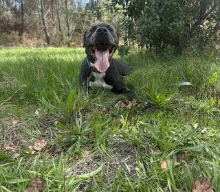 Tyson, mâle Staff x Labrador de 3 ans, très joueur avec les enfants. Identifié, vaccin presque à jour, non stérilisé. Urgent : cherche famille sérieuse à Bordeaux (33800) avec j