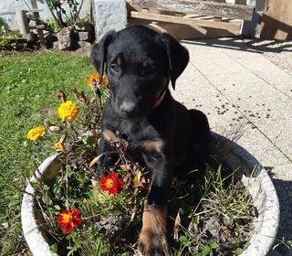 Parents non LOF race BEAUCERON , 2 femelles, elles sont identifiées par puce et vaccinées (primo vaccination). Elles sont très sociables, dynamiques, et câlines, un jardin sera né