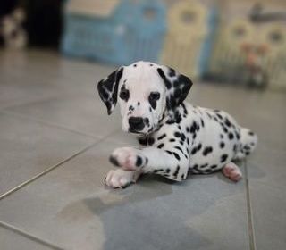 Petit chiot femelle dalmatien recherche une famille pour la vie. Elle a 2 mois, ses parents sont deux dalmatien LOF. Pucée, vermifugée et sevrée mais les tests PEA ont déterm
