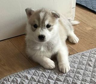 Nous proposons à l'adoption une portée de 7 chiots Husky Sibérien non LOF, nés le [date de naissance], élevés en milieu familial avec leur mère Naïa. ? Composition de la portée