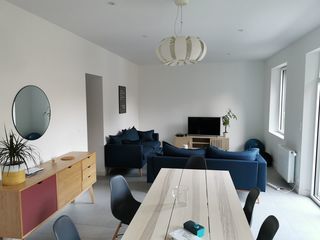 Loue chambre meublée 14.5 m2 au RDC dans une maison entièrement rénovée et transformée en co-living (6 chambres). Le co-living comprend actuellement 4 locataires (2F et 2H) âgés d