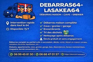 Je propose mes services pour tout débarras : maison, appartement, cave, grenier, garage. Intervention rapide et soignée. Tri des objets, possibilité de récupération (ce qui peut