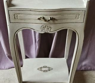 Jolie table d'appoint oû chevet bleu nuit poignées dorées. Tres bon état.