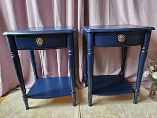 Jolie paire de chevet bleu nuit, poignées dorées. Tres bon etat.