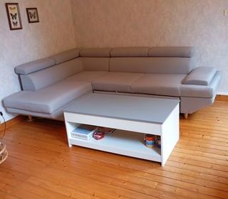 Canapé convertible 2 places très bon état. Vendu avec la table de salon pour 600 €. Quelques griffures de chat sur le côté droit.
